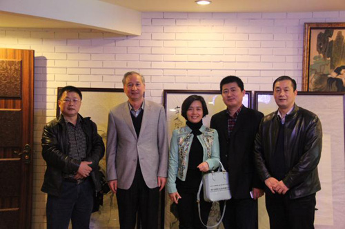 王維星會長、伍柳江秘書長、徐麗副秘書長與深圳市天一文化發(fā)展有限公司董事長蘇寧、深圳晚報企業(yè)家俱樂部秘書長李昌亮合影留念