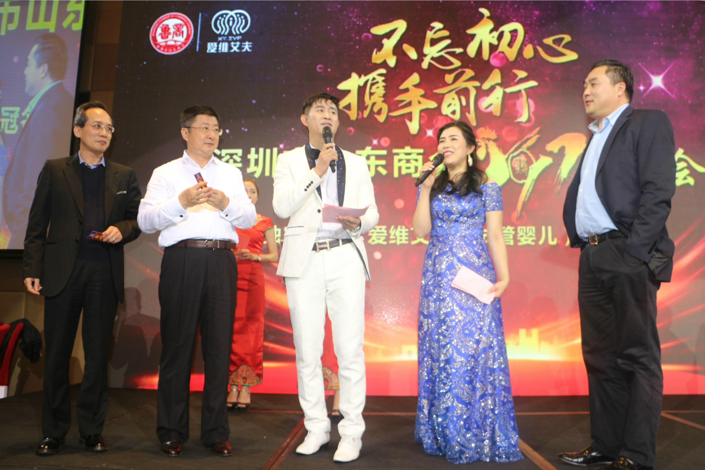 新年伊始,萬象更新。2月25日晚,“不忘初心,攜手前行——愛維艾夫·深圳市山東商會(huì)2017春茗會(huì)”在深圳益田威斯汀酒店隆重舉行。原深圳市副市長(zhǎng)、深圳市人大副主任郭榮俊,山東省人民政府駐深圳辦事處主任劉恒昌,中國光大國際有限公司總經(jīng)理王天義、招商銀行副行長(zhǎng)王慶彬、深圳市社會(huì)組織管理局副局長(zhǎng)孫景明等領(lǐng)導(dǎo)嘉賓出席祝賀。深圳市山東商會(huì)創(chuàng)會(huì)會(huì)長(zhǎng)王維星,會(huì)長(zhǎng)王立新,常務(wù)副會(huì)長(zhǎng)、副會(huì)長(zhǎng)等全體會(huì)員悉數(shù)出席,山大深圳研究院、山大深圳校友會(huì)、齊魯書畫院、在深兄弟商會(huì)、異地商會(huì)等近400多位各界人士歡聚一堂,互致問候,共襄盛會(huì)。本次晚會(huì)由深圳廣電交通廣播主持人宣容、全國微馬總隊(duì)長(zhǎng)文峰、深圳市山東商會(huì)會(huì)員李娜、宋澤偉聯(lián)合主持。