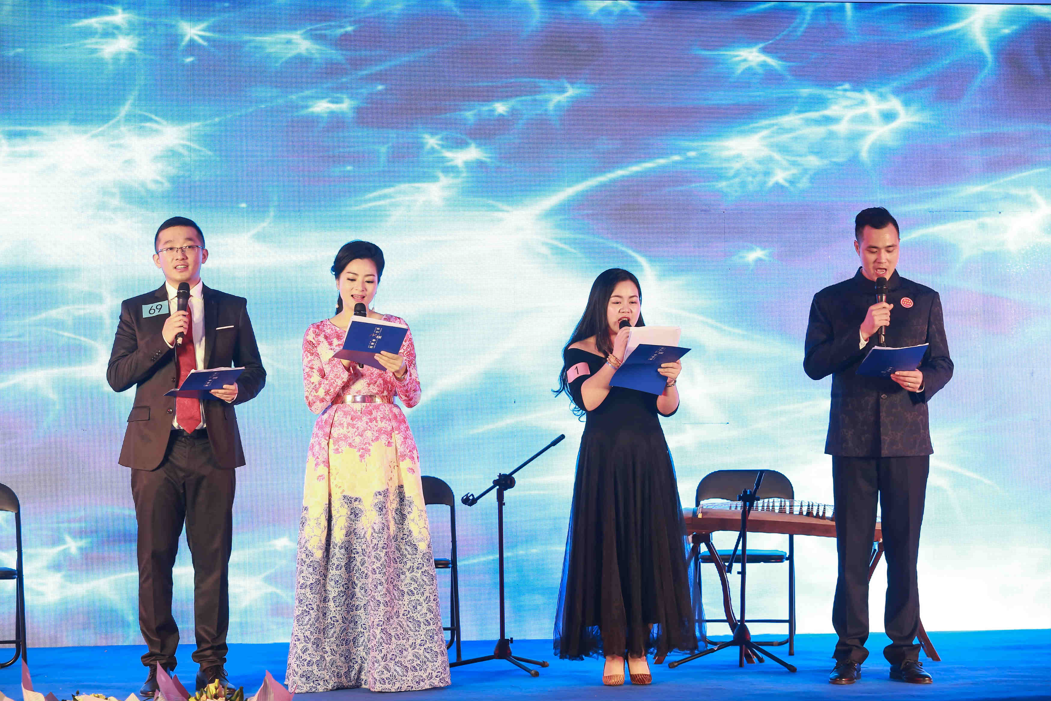 各異地商會選送的歌舞表演精彩紛呈,游戲互動多姿多彩,讓在場青年企業(yè)家融入了一片歡樂的海洋。由CCTV《大國人文》欄目主持人李紅梅、香港鳳凰衛(wèi)視中文臺主持人徐昌鵬、深圳市安慶商會選派優(yōu)秀青年代表周麗娟 、深圳市上饒商會選派優(yōu)秀青年代表劉良興表演詩朗誦《飛翔吧,青春》。深圳遼寧商會選送的節(jié)目民樂合奏《茉莉花》;深圳天津商會選送的節(jié)目快板書《每天歡樂多一點(diǎn)》;深圳市吉林商會會員孫美葇表演的瑜伽舞蹈《神話》;深圳市內(nèi)蒙古商會青年企業(yè)家烏日娜;深圳市吉林商會常務(wù)副秘書長黃浩然共同表演的歌伴舞《鴻雁》。