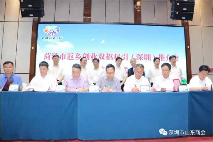 據(jù)了解,本次推介會上共簽約項目23個,總投資105.25億元,深圳市山東商會副會長、菏澤市返鄉(xiāng)創(chuàng)業(yè)(深圳)服務(wù)站站長、賽爾集團執(zhí)行總裁王凌鴻現(xiàn)場簽約投資10億返鄉(xiāng)項目。