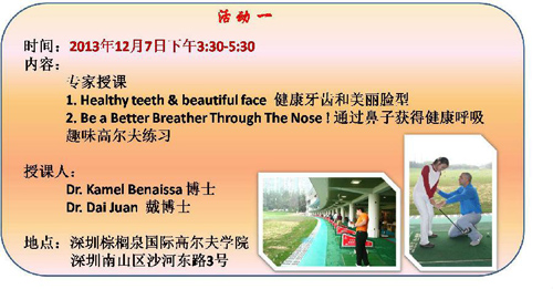 12月7日下午,尊美牙科聯(lián)合深圳棕櫚泉高爾夫?qū)W院舉辦了“通過鼻子呼吸獲得健康牙齒&塑造美麗臉型”主題講座活動,同時讓孩子們體驗高爾夫活動的樂趣。