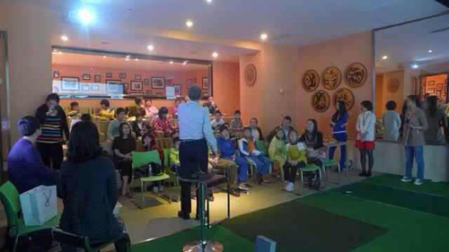 Dr. Kamel Benaissa于棕櫚泉高爾夫?qū)W院模擬房為家長和孩子們授課,活潑聰明的孩子們主動和Dr. Kamel用英文交流,生動活力的學習過程讓整個模擬房充滿了歡笑聲。