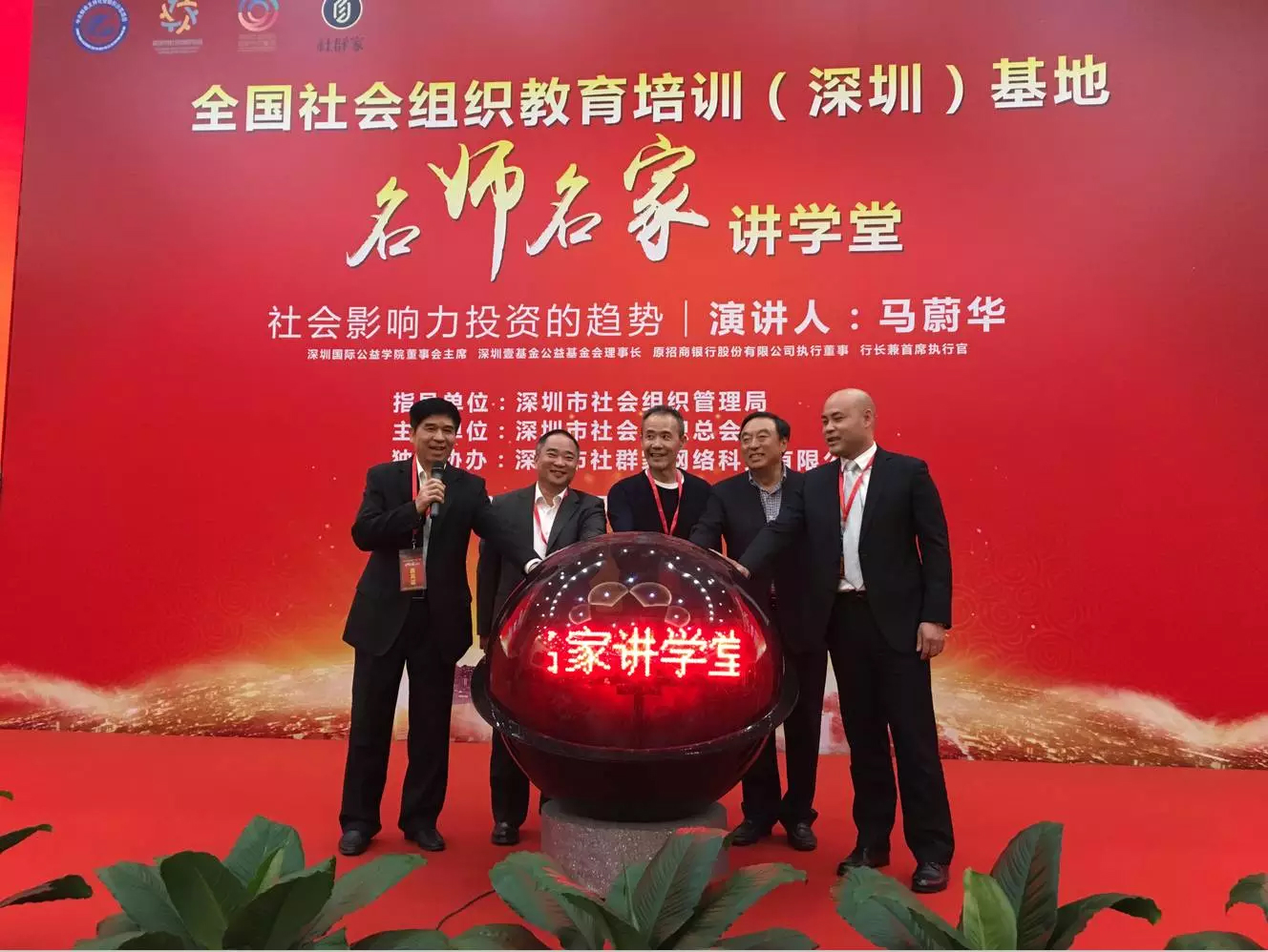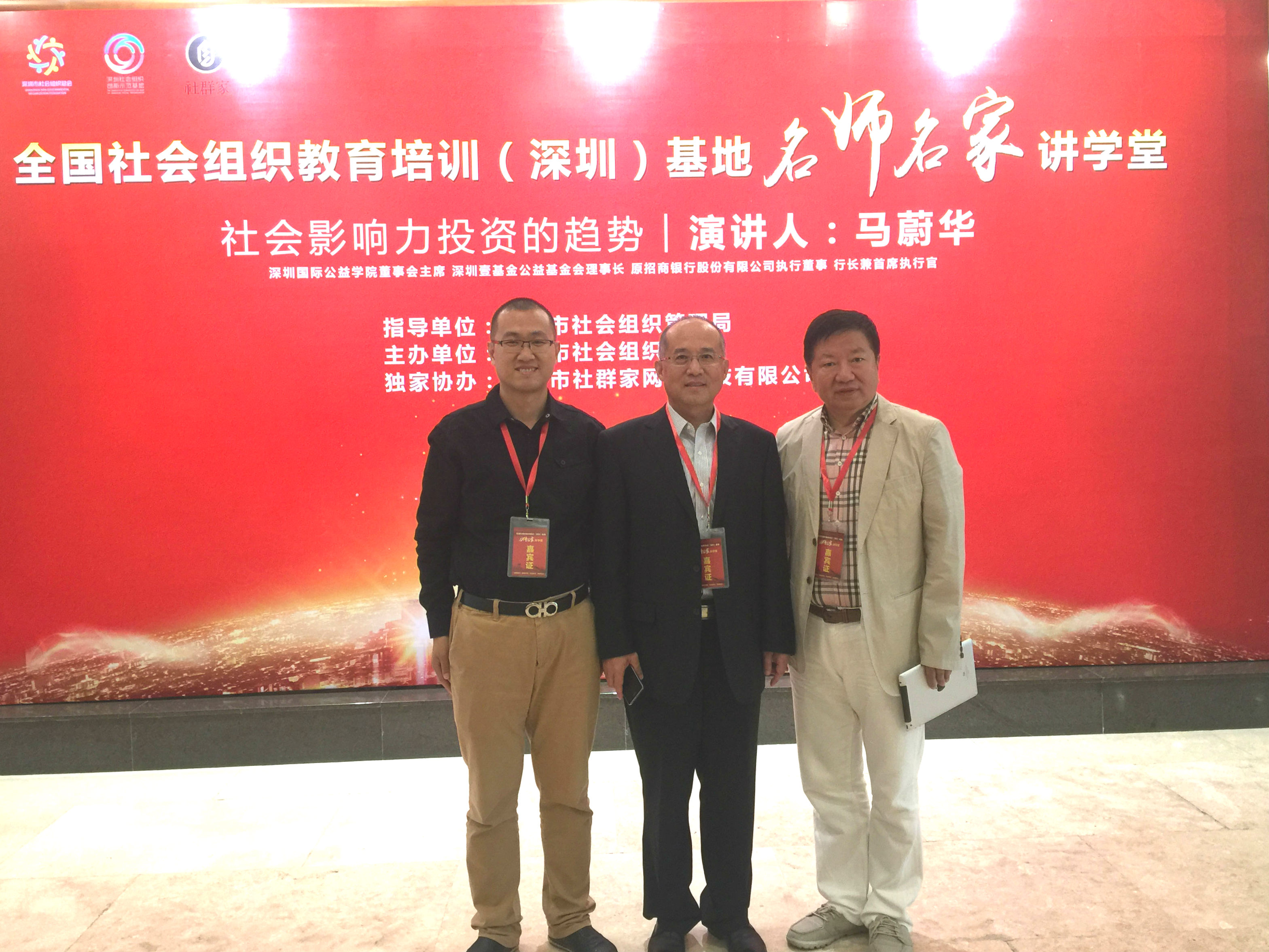 2017年11月1日,全國社會組織教育培訓(xùn)(深圳)基地首場名師名家講學(xué)堂在五洲賓館隆重開講。全國政協(xié)委員、公益領(lǐng)域“招商傳奇”馬蔚華主席就《社會影響力投資的趨勢》這一主題作首場演講。市社會組織管理局凌沖局長,市社會組織總會會長王石先生分別上臺致辭,我會會長王立新,常務(wù)副會長畢永濤,會員李超受邀同近500位社會組織主要負(fù)責(zé)人及分布在全國各地近30個分會場的近千名觀眾同步共享開講儀式和主題演講。