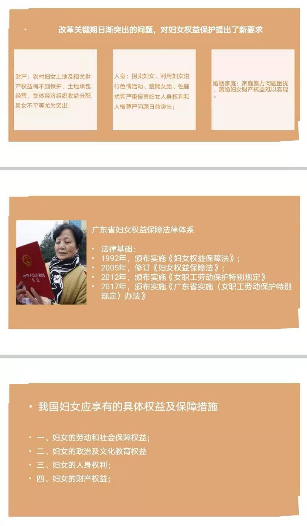 本次法律公益講座從以下幾方面進(jìn)行了普法宣傳:首先講為什么用法律保護(hù)婦女權(quán)益。我國早在1995年聯(lián)合國第四次世界婦女大會上就鄭重承諾:把男女平等作為促進(jìn)我國社會發(fā)展的一項基本國策;胡錦濤總書記在2003年中國婦女第九次全國代表大會也要求全黨全社會要堅決貫徹男女平等的原則。婦女權(quán)益保障方面的法律體系日趨完善,尤其廣東省2017年頒布實施的《廣東省實施<女職工勞動保護(hù)特別規(guī)定>辦法》對婦女享有政治、文化、勞動、財產(chǎn)、人身、婚姻家庭等各方面的權(quán)利進(jìn)行詳細(xì)規(guī)定。其次是婦女的勞動和社會保障權(quán)益、婦女的政治及文化教育權(quán)益、婦女的人身權(quán)利、婦女的財產(chǎn)權(quán)利的基本內(nèi)容。一方面,從婦女享有與男子平等的勞動就業(yè)權(quán)利,保障男女同工同酬勞動權(quán)益,法律對婦女實施特殊的勞動權(quán)益保護(hù),如禁止安排女職工從事礦山井下、不得安排女職工在經(jīng)期從事高處、低溫、冷水作業(yè)、女職工生育享有產(chǎn)假、哺乳假等。匯總了六個地區(qū)“保護(hù)亮點”,例如女職工月經(jīng)期間應(yīng)安排休息時間、女職工懷孕7個月以上每天安排休息1小時且?guī)?、女職工多生?個嬰兒增加15天產(chǎn)假、企業(yè)應(yīng)每天應(yīng)安排女職工1小時哺乳時間、女職工更年期,企業(yè)應(yīng)適當(dāng)減輕其勞動量。另一方面,講解了婦女生育保險制度,并告知具體有利企業(yè)的操作方法;最后對商會企業(yè)家關(guān)心的婦女勞動和社會保障權(quán)益進(jìn)行了詳細(xì)的回應(yīng)和講解。曲律師對于婦女的勞動和社會保障權(quán)益、婦女的財產(chǎn)權(quán)益等典型問題與女企業(yè)家息息相關(guān)的問題進(jìn)行了著重講解,并強(qiáng)調(diào)了其中風(fēng)險,提供了具體防控風(fēng)險的方法。若為企業(yè)家,主要的風(fēng)險防控方法在于進(jìn)行企業(yè)法律風(fēng)險自查,針對自查出的問題,引入專業(yè)團(tuán)隊進(jìn)行企業(yè)全方位的合法合規(guī)的改革,并監(jiān)督執(zhí)行到位。若為女職工,應(yīng)多加學(xué)習(xí)保障婦女權(quán)益的相關(guān)法律法規(guī),對不利自身的相關(guān)書面材料,可以拒絕簽署,避免權(quán)益被侵犯后無法維權(quán)。對發(fā)生侵犯婦女的人身權(quán)利的行為,例如拐賣婦女、利用婦女進(jìn)行色情活動、對婦女實施性騷擾、損害婦女的人格權(quán)等,可通過向單位和有關(guān)機(jī)關(guān)投訴、向公安機(jī)關(guān)報案、向人民法院起訴、向婦聯(lián)組織投訴,婦聯(lián)組織有權(quán)要求并協(xié)助有關(guān)部門或單位查處。曲律師以生動語言將法律與案例相結(jié)合,為參加本次活動的企業(yè)家提供了一次很好的法律服務(wù)。參加本次活動的女會員聽得非常認(rèn)真,講座期間多名女企業(yè)家互動提問,整個普法講座非常精彩,女企業(yè)家們多次鼓掌,多人認(rèn)為法工委律師所講的內(nèi)容都是企業(yè)家們希望學(xué)習(xí)并用以企業(yè)管理的專業(yè)法律知識,當(dāng)場提出希望法工委的此類普法講座能更廣泛地深入企業(yè)。本次法工委普法講座進(jìn)一步提高了商會女企業(yè)家對婦女權(quán)益保障法的認(rèn)識,提高了女會員的幸福感和安全感,增強(qiáng)了對自身乃至自己經(jīng)營的企業(yè)中所涉及的女員工相關(guān)權(quán)益的學(xué)習(xí)了解,講座取得了良好的法律效果和社會效果。