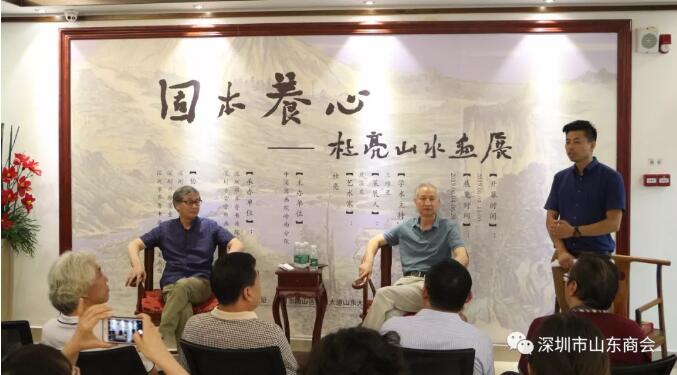 2019年6月4日“固本養(yǎng)心——杜亮山水畫展”在深圳市南山區(qū)東華園5棟3樓隆重舉行開幕儀式。此次畫展由中國國畫院嶺南分院主辦,深圳市齊魯書畫院、深圳市古營軒畫廊承辦,深圳市山東商會、深圳市瀚墨重彩畫研究院、深圳市齊魯書畫院前海美術(shù)館協(xié)辦。深圳市各界嘉賓和書畫愛好者近60人出席了開幕儀式。我會黨委書記、創(chuàng)會會長、深圳市齊魯書畫院院長、中國國畫院嶺南分院院長王維星,黨委紀(jì)委書記、深圳市齊魯書畫院常務(wù)副院長張書航,副會長、深圳市濟(jì)南商會副會長張永軍,執(zhí)行秘書長陳振永,副秘書長張含增、王慶社等會員企業(yè)家和藝術(shù)家馮占奎、董俊良、劉春昌、張譯心、馬君、許少杰,麒麟山書畫院院長孫俊宇等出席了開幕式。畫展開幕式由古營軒畫廊總經(jīng)理莊汝東主持。