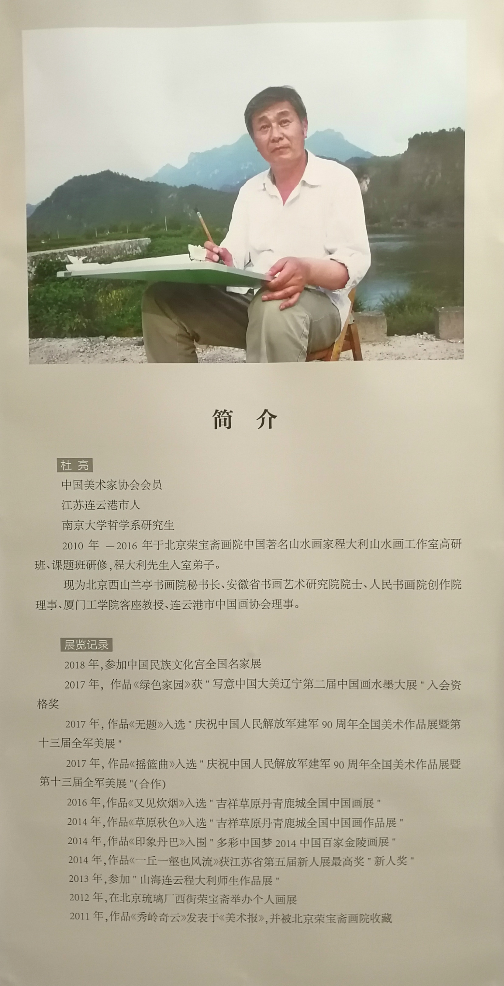 中國美術(shù)家協(xié)會會員,江蘇連云港市人。南京大學(xué)哲學(xué)系研究生。2010年-2016年于北京榮寶齋畫院中國著名山水畫家程大利山水畫工作室高研班、課題班研修,程大利先生入室弟子。現(xiàn)為北京西山蘭亭書畫院秘書長、安徽省書畫藝術(shù)研究院院士、人民書畫院創(chuàng)作院理事、廈門工學(xué)院客座教授、連云港市中國畫協(xié)會理事。
