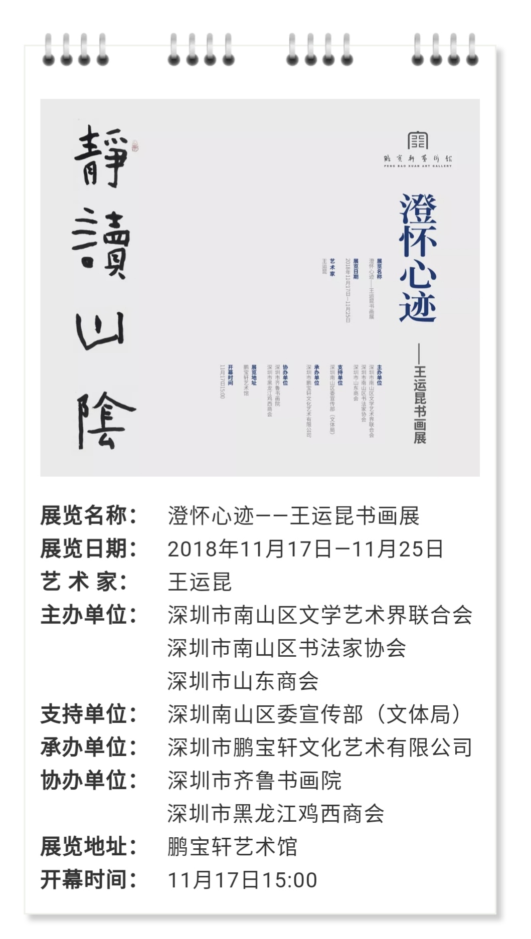 王運(yùn)昆先生表示:" 深圳不僅是我國(guó)改革開放的前沿重鎮(zhèn),更是文人墨客向往、聚集的文化風(fēng)水寶地。僅南山區(qū)就有一大批享譽(yù)全國(guó)的書畫家。我每次來深圳,到留仙洞觀摩,到博物館、鵬寶軒等畫廊看展,都會(huì)受到一次又一次深深的文化熏陶和教育,感到自己的不足。這次舉辦展覽,希望能得到領(lǐng)導(dǎo)和同道們的批評(píng)指正。這也是我向大家學(xué)習(xí)提高的一次非常難得的機(jī)會(huì)。再次衷心地感謝為這次展覽做出支持和幫助的領(lǐng)導(dǎo)、同道和親朋好友們。"