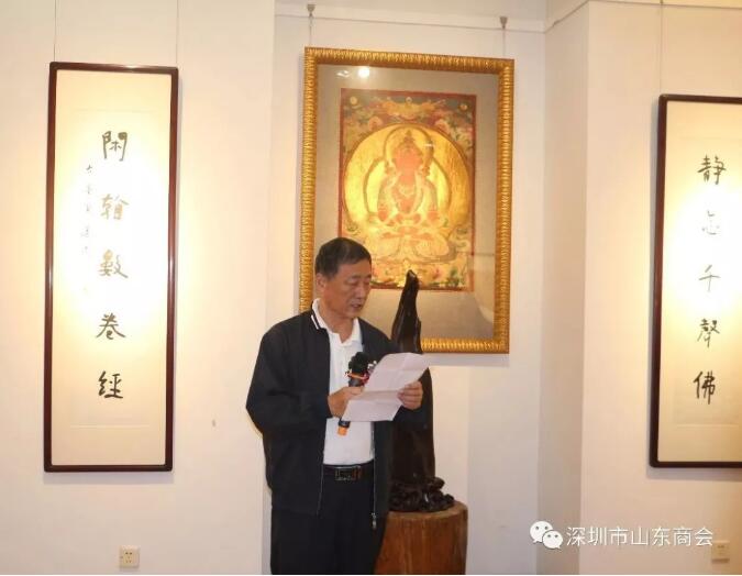 深圳市山東商會(huì)黨委書記、創(chuàng)會(huì)會(huì)長(zhǎng)、深圳市齊魯書畫院院長(zhǎng)王維星先生致辭:" 我代表深圳市山東商會(huì)、代表協(xié)辦單位齊魯書畫院對(duì)大家的光臨表示感謝。同時(shí)他表示:齊魯大地,孔孟之鄉(xiāng),山東是具有深厚文化傳統(tǒng)和底蘊(yùn)的厚土。王運(yùn)昆老先生是出道較早且極具實(shí)力的書畫藝術(shù)名家,也是山東書法創(chuàng)作群體的中堅(jiān)力量。他出生于一個(gè)革命家庭,幼承庭訓(xùn),受到他的父親、山東省著名書法家王大中的熏陶和影響,后又師從書法名家魏?jiǎn)⒑蟆⑹Y維崧等老先生。幾十年來,在藝術(shù)領(lǐng)域取得了很高的建樹。并祝王運(yùn)昆老先生的書畫展圓滿成功。