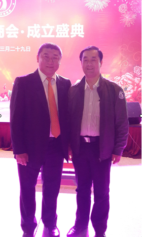 福建商會辦公室主任曾春姍與深圳市天津商會會長、勵展華博展覽(深圳)有限公司董事長蔣承文合影