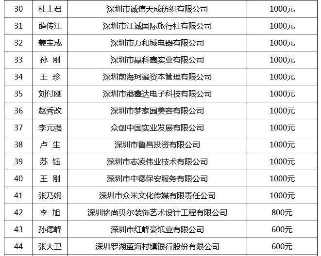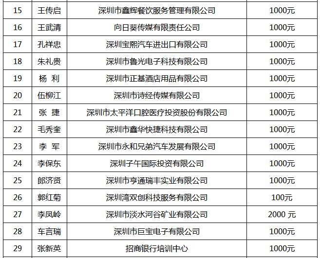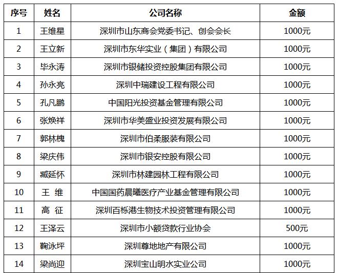 深圳市山東商會發(fā)起河源連平扶貧助學企業(yè)家名單