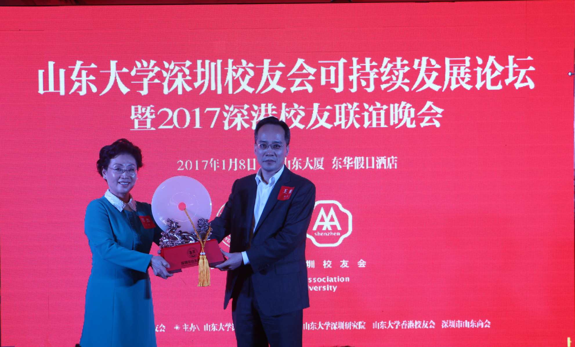 聯(lián)誼晚會(huì)上,我會(huì)常務(wù)副會(huì)長(zhǎng)兼秘書長(zhǎng)王維受創(chuàng)會(huì)會(huì)會(huì)長(zhǎng)王維星先生、會(huì)長(zhǎng)王立新先生委托,代表商會(huì)分別為山東大學(xué)深圳研究院、山東大學(xué)深圳校友會(huì)贈(zèng)送商會(huì)定制禮品“平安扣”。本次活動(dòng)得到我會(huì)會(huì)長(zhǎng)單位東華集團(tuán)公司,我會(huì)常務(wù)副會(huì)長(zhǎng)兼秘書長(zhǎng)王維,會(huì)員王宣民,恒大農(nóng)牧集團(tuán)等公司和校友的大力支持。