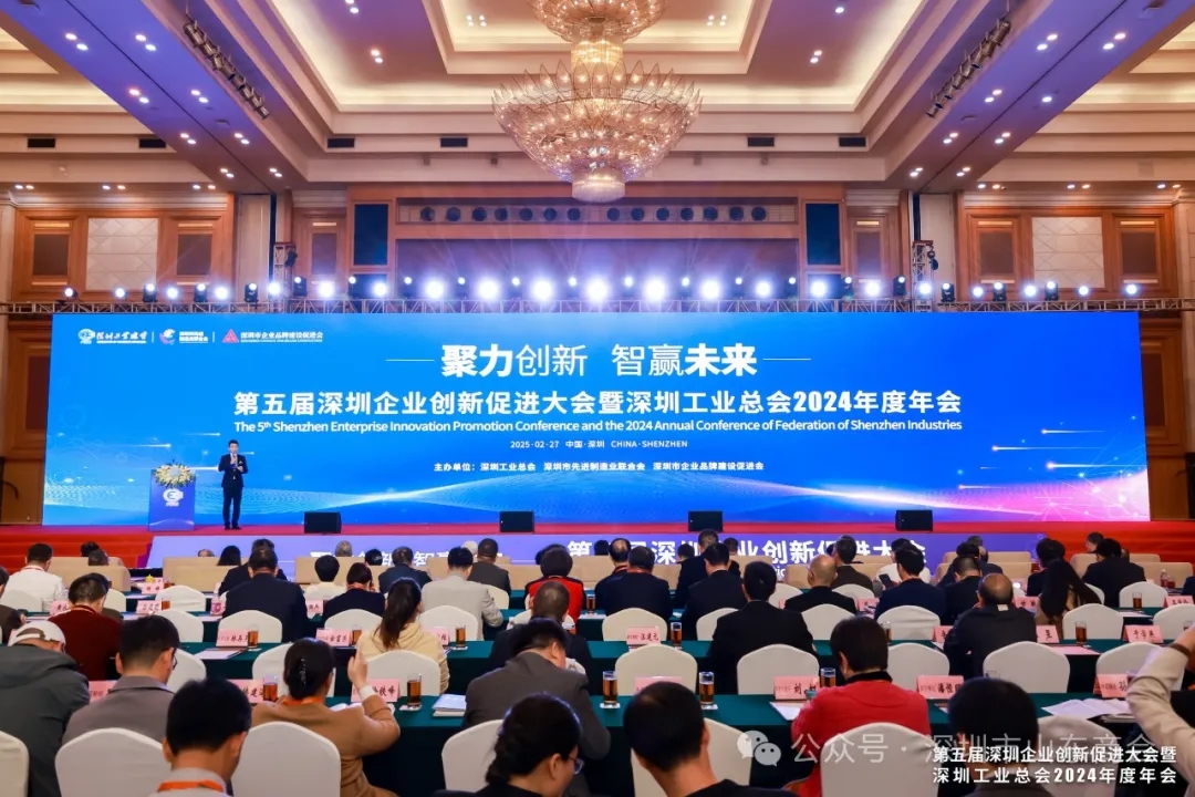 2025年2月27日下午,以“聚力創(chuàng)新 智贏未來”為主題的第五屆深圳企業(yè)創(chuàng)新促進(jìn)大會暨深圳工業(yè)總會2024年度年會在深圳五洲賓館隆重舉行。