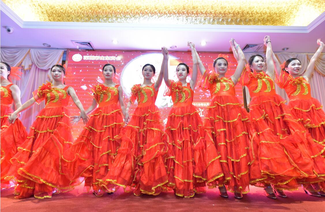 本次晚會的節(jié)目由商會各區(qū)分會傾情贊助,精彩紛呈。有福田二分會愛維艾夫集團送來的獨具風格的西班牙舞蹈《激情康康》做開場舞,八個身著紅裙的姑娘們熱情似火,為中秋晚會注入了激情與活力;有南山二分會深情款款的吉他彈唱《南方姑娘》,磁性的嗓音,動人的吉他,余音繞梁;“每逢佳節(jié)倍思親”,由會員宋磊和他的小女兒動情演唱的《父子》勾起了在場山東人濃濃的思鄉(xiāng)情,親情,永遠是我們難以割舍的血脈!南山一分會永和兄弟汽車公司選送的《肚皮舞》成功沸騰了全場,那妖嬈的舞姿和金色的翅膀演繹了一場極具沖擊力的視覺盛宴將晚會推向了高潮;盡管“北方有我童年的土炕,南方確是我一生奮斗的疆場”,雖然“我的家在南方,北方卻住著我的爹娘”。由寶安光明分會陳宏麗帶來的詩朗誦《南方北方》像一碗故鄉(xiāng)的清茶,茶香四溢,縈繞在我們每個人的心房;羅湖分會賽菲爾珠寶贊助的頗具民族特色的舞蹈《彩云之南》,七個美麗的傣家少女,用孔雀般聘婷的姿態(tài),將我們帶到了神秘的彩云之南。每個節(jié)目都極具特色,能活潑、能深情、也能一舞點燃全場。