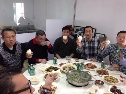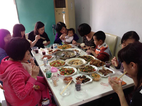 秘書處成員的親人享受可口的山東菜