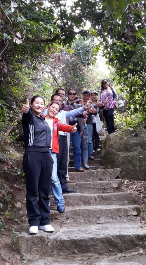 這次踏春活動對秘書處成員及其家屬人來說是一件非常快樂的事,大家也像春暖花開一樣,如花的笑容,綻放在每個人的臉上,歌聲陣陣,笑聲、吶喊聲不斷,甩掉憂郁、煩惱,邁開大步,放飛心情。一路上每一處優(yōu)美的景點、美麗的綠草鮮花叢中,大家擺出各種造型,留下美麗倩影。踏春一路基本上都是石臺階,中間還有個涼亭,供大家一邊休息,一邊欣賞景色。最快登上山頂返回的是副秘書長張含增和常務(wù)理事朱禮貴、會員孫桂華,常務(wù)理事王慶社卻沿著羊腸小道繼續(xù)前行,直到登上另一個山頭的制高點,最后返回。下山歸來,雖然身體有些疲勞,但大家心情愉悅,興致依然高漲、互相調(diào)侃,盡享各自活動所帶來的的愉悅。