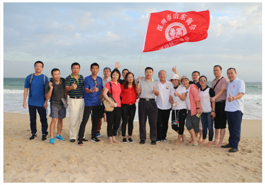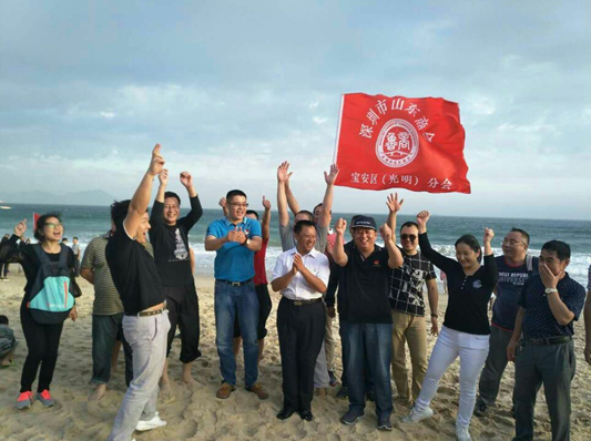 下午,大家乘大巴來到西涌海灘。商會大旗和各區(qū)分會會旗在海灘上飄揚,形成了海邊一道亮麗的風景。之后各區(qū)分會進行了拔河比賽。拔河共4個隊,兩兩對決。比賽開始前,大家摩拳擦掌,躍躍欲試,在各小隊隊長的精心指導后,經(jīng)過緊張的角逐,最終由寶安、龍崗、龍華聯(lián)合縱隊獲得第一名。