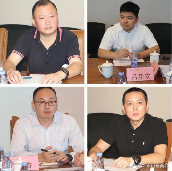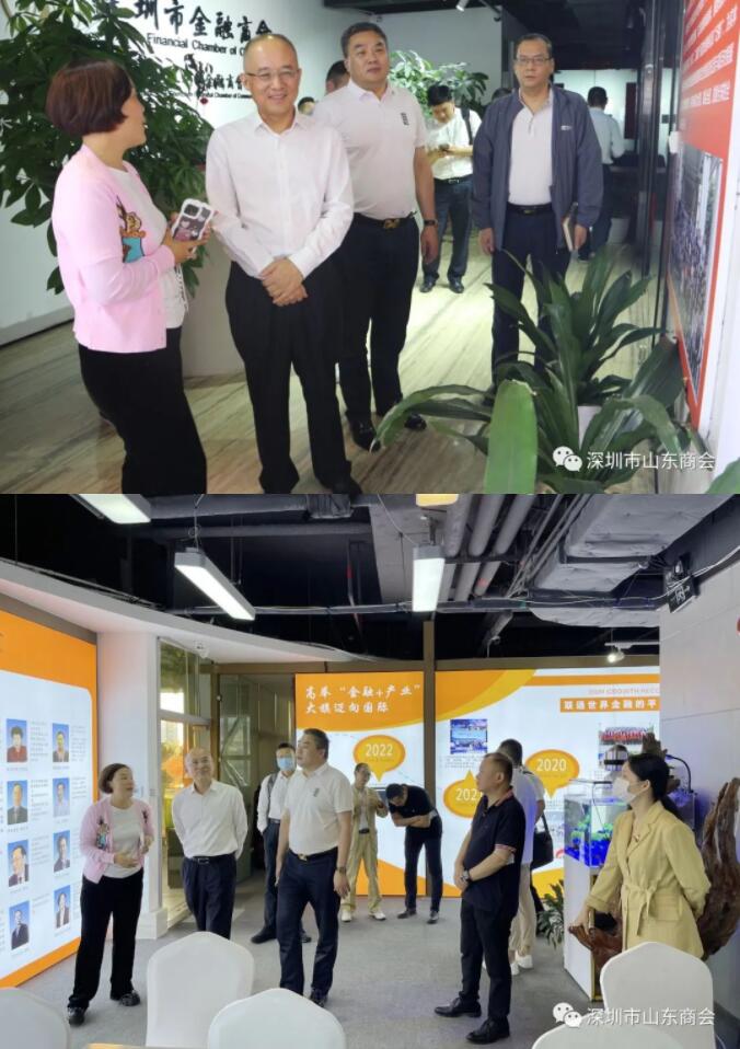 王立新會長感謝金融商會領導的熱情接待,并簡要介紹了深圳市山東商會的發(fā)展歷程與工作開展情況。他表示山東商會一直秉承服務會員、服務家鄉(xiāng)的宗旨,立足粵港澳大灣區(qū),傳承發(fā)揚山東優(yōu)秀齊魯文化,為魯深兩地企業(yè)家搭建服務平臺,促進魯深兩地經(jīng)貿(mào)往來,積極發(fā)揮橋梁紐帶作用,同時為會員企業(yè)拓展發(fā)展平臺,聯(lián)合深圳異地商會發(fā)起成立異地商會會長及秘書長聯(lián)席會議,大家不定期組織活動,溝通交流、創(chuàng)造合作機會。王會長表示,山東商會與金融商會空間距離近,在產(chǎn)業(yè)金融合作上更要走得近,為金融商會推介優(yōu)質產(chǎn)業(yè)資源,也為山東商會的產(chǎn)業(yè)增加金融助力;同時,也希望以兩家商會的深入合作為基礎,為山東本土產(chǎn)業(yè)提供優(yōu)質金融服務,實現(xiàn)深圳與山東的互融互通。