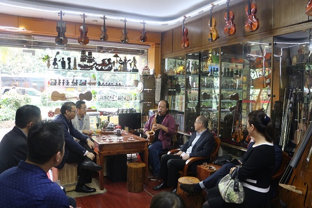商會會員、 深圳市藝之林樂器有限公司總經(jīng)理宋磊為大家演奏薩克斯