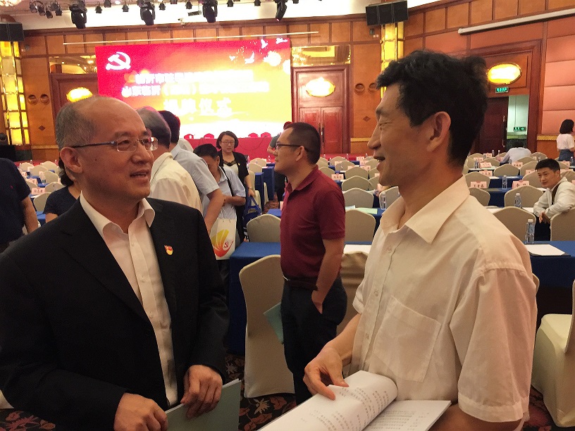 山東省政府駐廣州辦事處袁延春主任與王立新會長交談