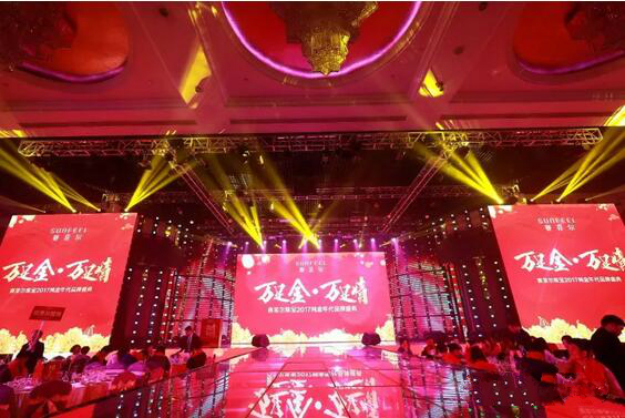 王義善董事長(zhǎng)在致辭中講到:“2017年,是寫滿成績(jī)的一年,是賽菲爾珠寶品牌全面實(shí)現(xiàn)升級(jí)的一年。2017年年初我們正式入駐金展4000平米嶄新而寬敞的展廳;2017年我們繼續(xù)第四年獨(dú)家冠名央視除夕大戲《喜到福到好運(yùn)到》、創(chuàng)造出全球7億華人同時(shí)段收看的收視記錄;2017年,我們獨(dú)家冠名CoCo李玟【18】世界巡回演唱會(huì)深圳站、北京站,攜手打造新一季《純金年代》廣告時(shí)尚大片,將品牌與明星深度捆綁,在時(shí)尚圈娛樂(lè)圈不斷創(chuàng)造著屬于賽菲爾珠寶的品牌影響力;2017年,我們?cè)谄放菩袖N上借助“萬(wàn)足金婚紗”、“大美中國(guó)風(fēng)萬(wàn)足金婚紗” 打造全國(guó)性公關(guān)事件——“萬(wàn)足金婚紗尋找最美新娘”,引爆線上線下。2017年,我們創(chuàng)新運(yùn)營(yíng)配套模式,成立業(yè)內(nèi)第一家黃金商學(xué)院,為加盟商提供更為詳盡的運(yùn)營(yíng)整體方案。2017年,我們奮力前行,努力為消費(fèi)者、為加盟商打造一個(gè)更有價(jià)值的零售品牌,一個(gè)更值得信賴的零售品牌,在激烈的市場(chǎng)競(jìng)爭(zhēng)中尋找出一條可持續(xù)發(fā)展的品牌之路?!?/span>