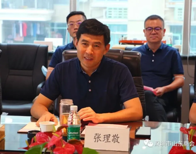 王立新會長對張理敬副主任一行的到來表示熱烈歡迎。他介紹,深圳市山東商會是由山東籍在深企業(yè)家共同發(fā)起注冊成立的合法省級商會組織。商會成立于2012年,成立九年多來在有關部門的大力支持和鼓勵下,商會一直秉承“信息共享,團結互助,共同發(fā)展”的辦會理念,發(fā)揚“包容?厚德? 誠信? 共贏”的商會精神,積極聯(lián)絡在深圳的山東企業(yè)和山東籍的企業(yè)家,聚集人脈和優(yōu)質資源,為會員企業(yè)發(fā)展提供助力,為山東家鄉(xiāng)“雙招雙引”工作做好服務。商會先后被山東省工商聯(lián)授予“2019年度‘搭橋鋪路工程’突出貢獻商會”稱號及“山東省雙招雙引聯(lián)絡站”。王會長表示,青島市已經(jīng)派出六批體悟實訓干部來深圳掛職學習,可以看出青島市委市政府對體悟實訓活動的重視和支持,實訓干部們都是優(yōu)秀人士,他們在深圳打造青島城市會客廳,舉辦青深聯(lián)誼會,加強深青兩地的交流。通過與體悟實訓干部的交流,讓我深切感受到了青島干部的責任、擔當和激情。山東商會與前幾批體悟實訓隊保持了良好的互動交流,今后也將在之前合作的基礎上,繼續(xù)與體悟實訓隊打造暢通的溝通機制,為青島“雙招雙引”工作做好服務。
