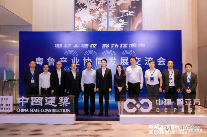 2023年10月20日下午,“潮起大灣區(qū),聯(lián)動(dòng)環(huán)渤?!?023粵魯產(chǎn)業(yè)協(xié)同發(fā)展交流會(huì)”在深圳隆重召開,此次會(huì)議由中國(guó)建筑國(guó)際集團(tuán)旗下中建國(guó)際投資集團(tuán)有限公司聯(lián)合深圳市企業(yè)聯(lián)合會(huì)、深圳市企業(yè)家協(xié)會(huì)共同主辦,中建國(guó)際投資(山東)有限公司承辦,深圳市山東商會(huì)作為支持單位參與了此次交流會(huì)。中國(guó)建筑國(guó)際集團(tuán)高級(jí)副總裁、中建國(guó)際投資董事長(zhǎng)兼總經(jīng)理?xiàng)钚l(wèi)東,中建國(guó)際投資副總經(jīng)理王一,中建國(guó)際投資(山東)有限公司董事長(zhǎng)白建偉,深圳市企業(yè)聯(lián)合會(huì)黨委副書記、執(zhí)行會(huì)長(zhǎng)康永魁,執(zhí)行副會(huì)長(zhǎng)兼秘書長(zhǎng)唐毅輝,我會(huì)會(huì)長(zhǎng)王立新,執(zhí)行會(huì)長(zhǎng)兼秘書長(zhǎng)梁慶偉,執(zhí)行會(huì)長(zhǎng)孫永亮、臧延懷、王傳啟、張永軍、黃振輝,副會(huì)長(zhǎng)毛秀奎、劉小娟,山東省相關(guān)區(qū)縣領(lǐng)導(dǎo),中建國(guó)際投資總部領(lǐng)導(dǎo)及相關(guān)子公司負(fù)責(zé)人等出席本次活動(dòng)。