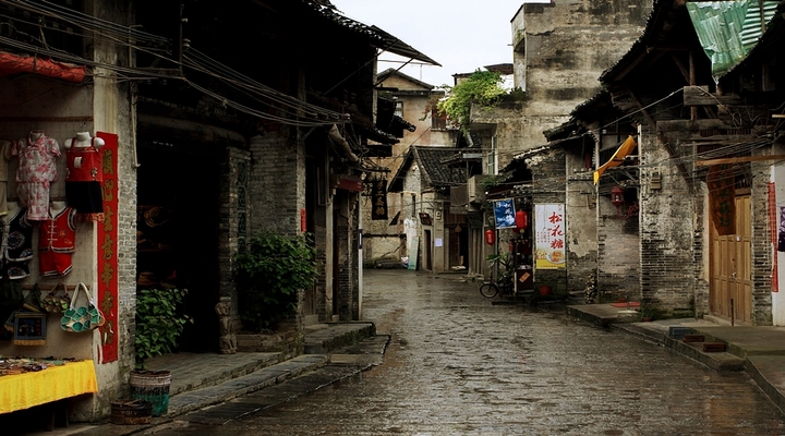 剛進(jìn)入陽朔境內(nèi),車窗外的群山便呈現(xiàn)出桂林青山獨(dú)有的秀美之姿。很快,高鐵便抵達(dá)陽朔站,出了高鐵站,一抬頭,一座拔地而起的山峰就映入眼簾,果然,桂林最不缺的就是“石頭”。我們一行人在導(dǎo)游的帶領(lǐng)下乘大巴前往興坪古鎮(zhèn)。古鎮(zhèn)并不大,是一條長(zhǎng)約一公里的石板街,游人不是很多,青石板路上泛著時(shí)光的痕跡,路的兩旁還保留著最原始的磚瓦結(jié)構(gòu)的房屋,透露出濃濃的懷舊氣息。沒有刻意地修復(fù),一派天然,還有老人悠閑地坐在門邊抽著旱煙,偶爾傳來的那是無法仿造的悠然古韻。