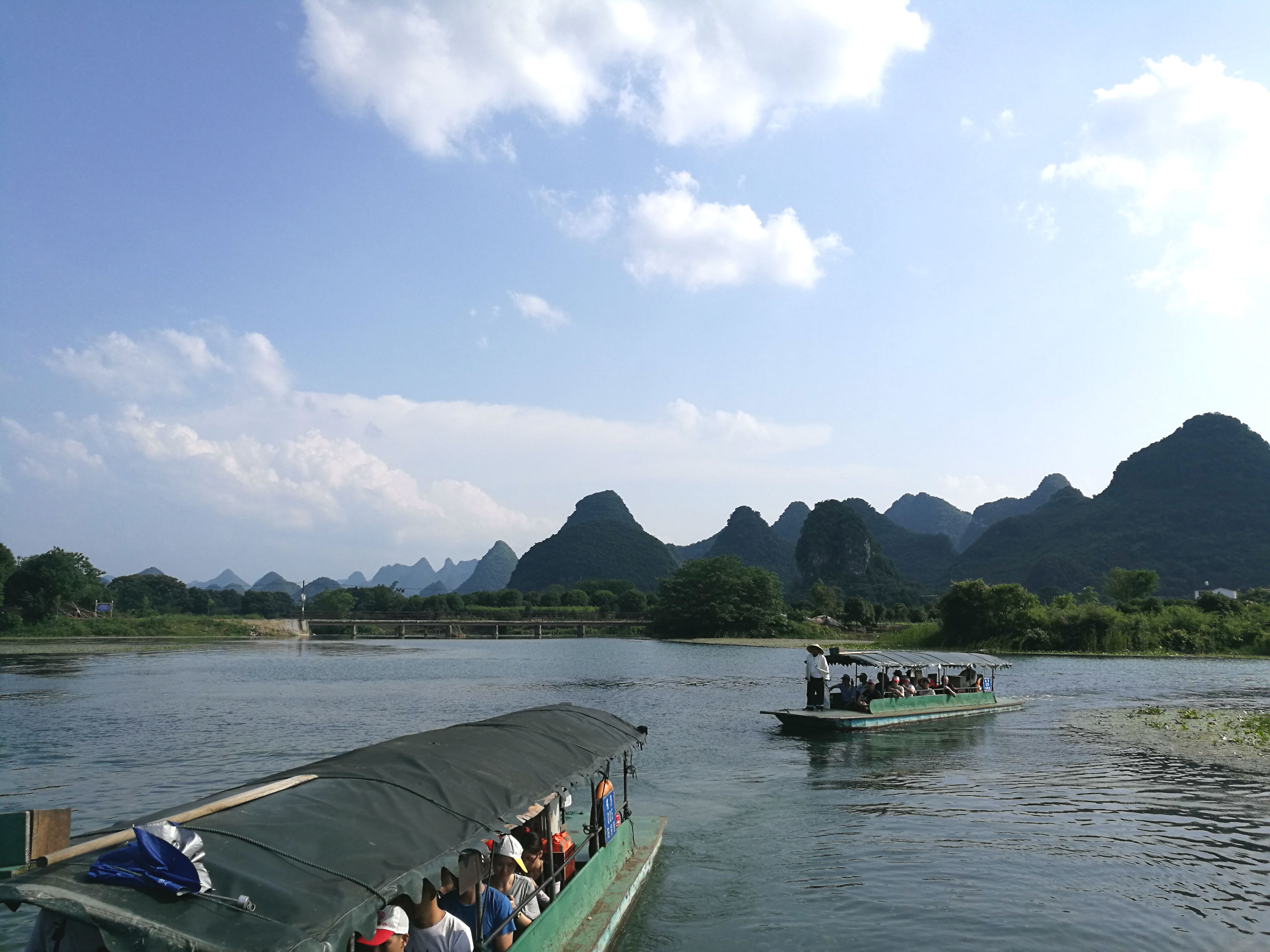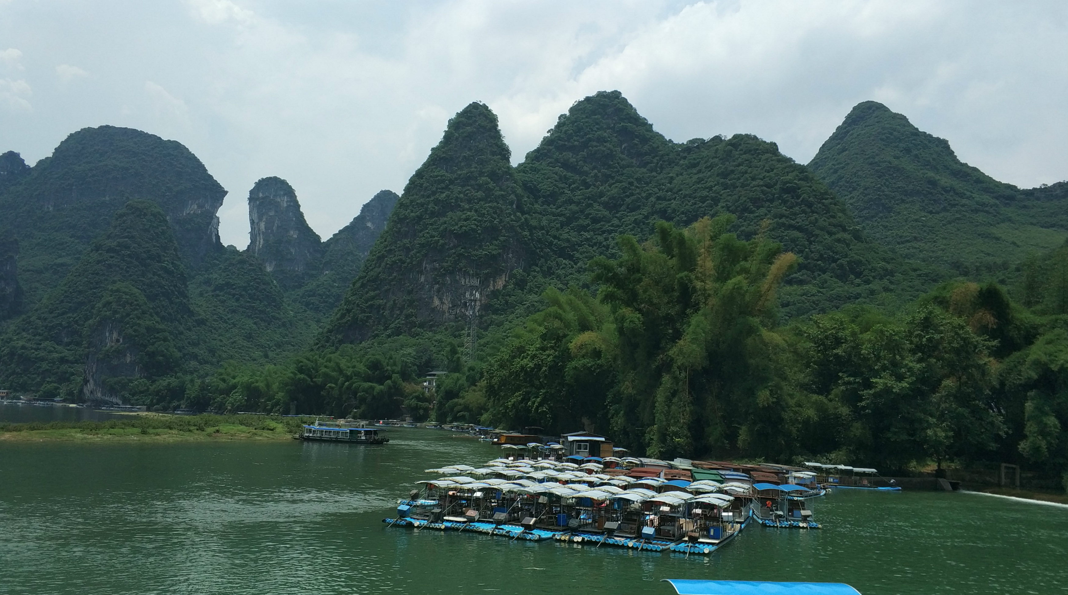 “桂林山水甲天下、陽朔山水甲桂林”。在興坪古鎮(zhèn)午餐后,大家便迫不及待的前往漓江領(lǐng)略名動(dòng)天下的“桂林山水”。踏上漓江畔,大家紛紛拿出20元人民幣與著名的“二十元人民幣”合影留念。“漓江的水真靜啊,靜得讓你感覺不到它在流動(dòng);漓江的水真清啊,清得可以看見江底的沙石;漓江的水真綠啊,綠得仿佛那是一塊無瑕的翡翠。”不錯(cuò)的,陽朔的山水無論怎么看都是美的。我們乘船暢游漓江,兩岸青山相對(duì)出,仿佛人在畫中游。在這里除了九馬畫壁,我們還看到了非常有名的魚鷹——鸕鶿。大家在船頭拍照,在水光山色間留下難忘的紀(jì)念。