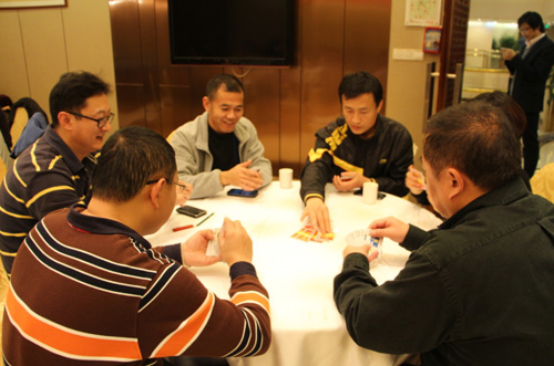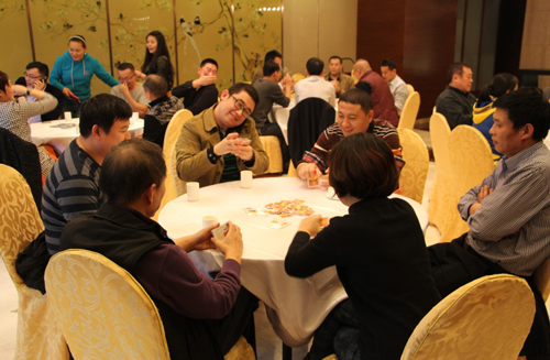 比賽結(jié)束后,大家合影留念,在山東商會(huì)會(huì)館共進(jìn)晚宴。五位參與活動(dòng)的副會(huì)長(zhǎng)王維星、王維、孫永亮、侯紅亮、郭林槐分別致辭祝酒,祝愿大家在新的一年闔家幸福,事業(yè)順利、錢“花”不斷、馬到成功,宴會(huì)結(jié)束后,許多會(huì)員又自行組隊(duì),重開賽局,享受著忙里偷閑的鄉(xiāng)情鄉(xiāng)誼及商會(huì)大家庭的歡聚樂趣。